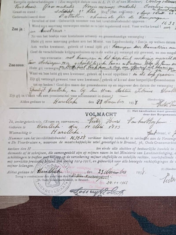 Gebruikssporen aanwezig.Jaar: 1938 Harlebeke.Op naam Victor Henri Van. Geboren 11 Mei 1893.