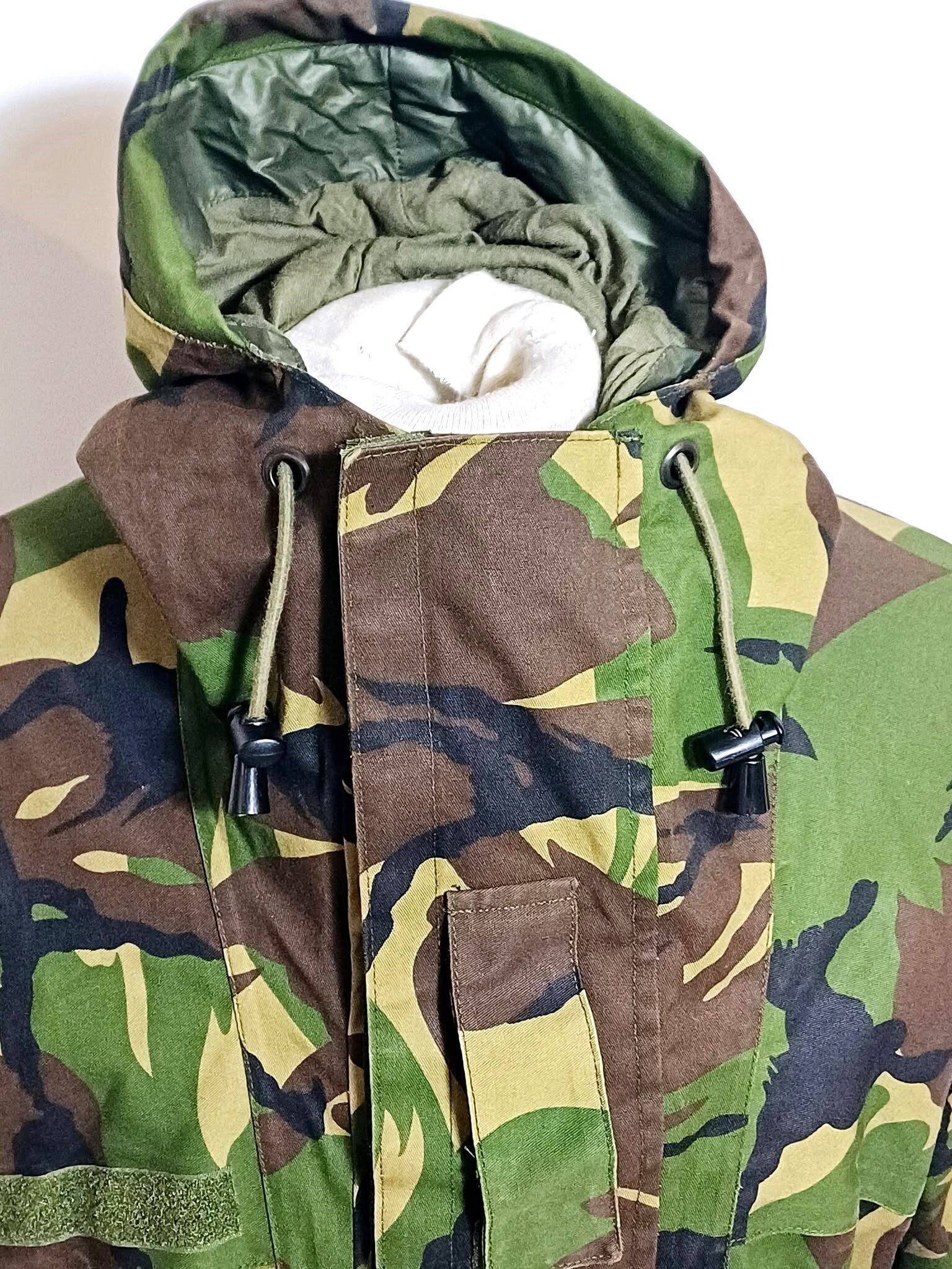 Bevindt zich in een uitstekende staat. DPM camouflage.NATO maat: 6080/9095.Sluiting: Rits met drukknopen en velcro.