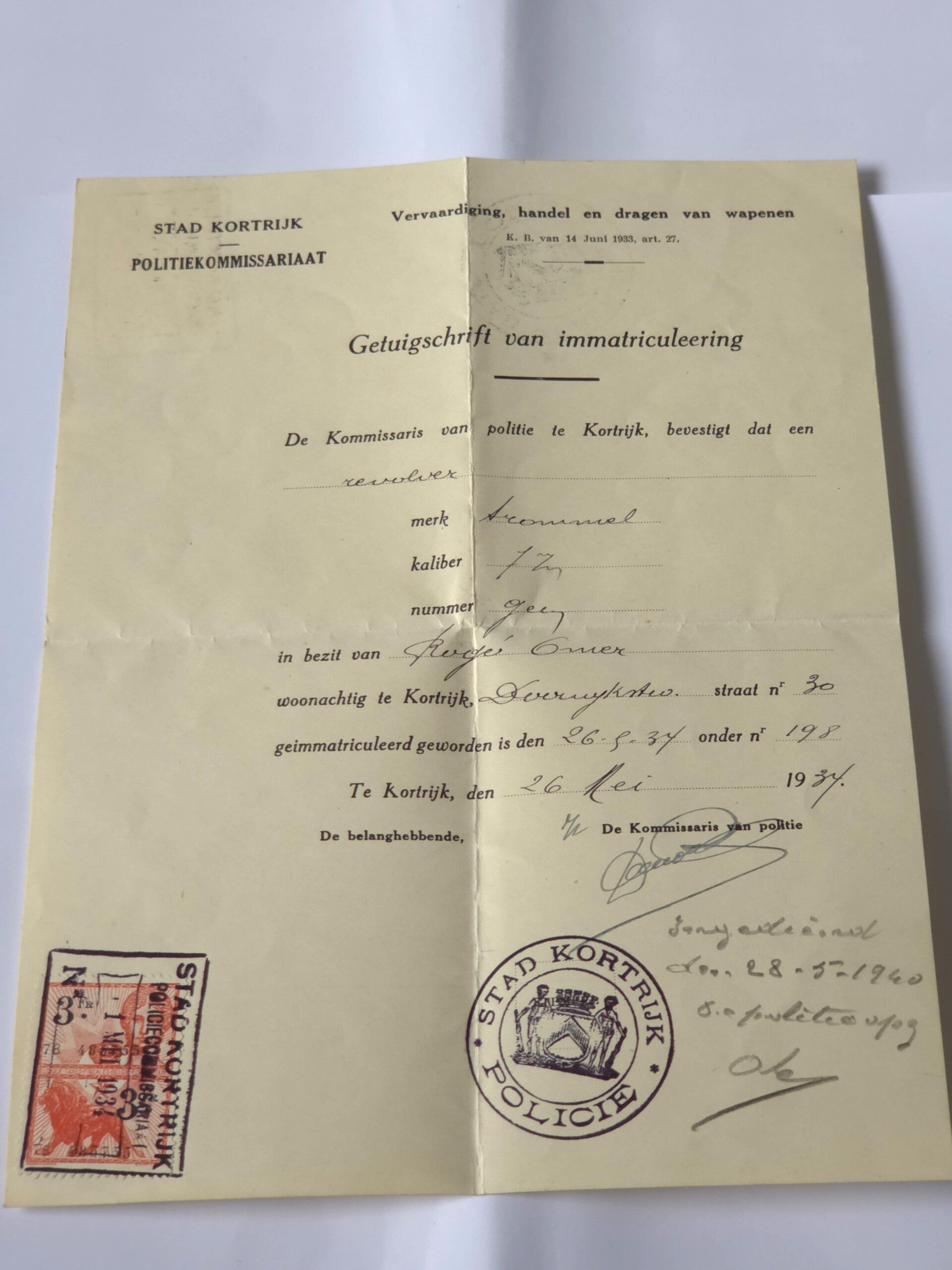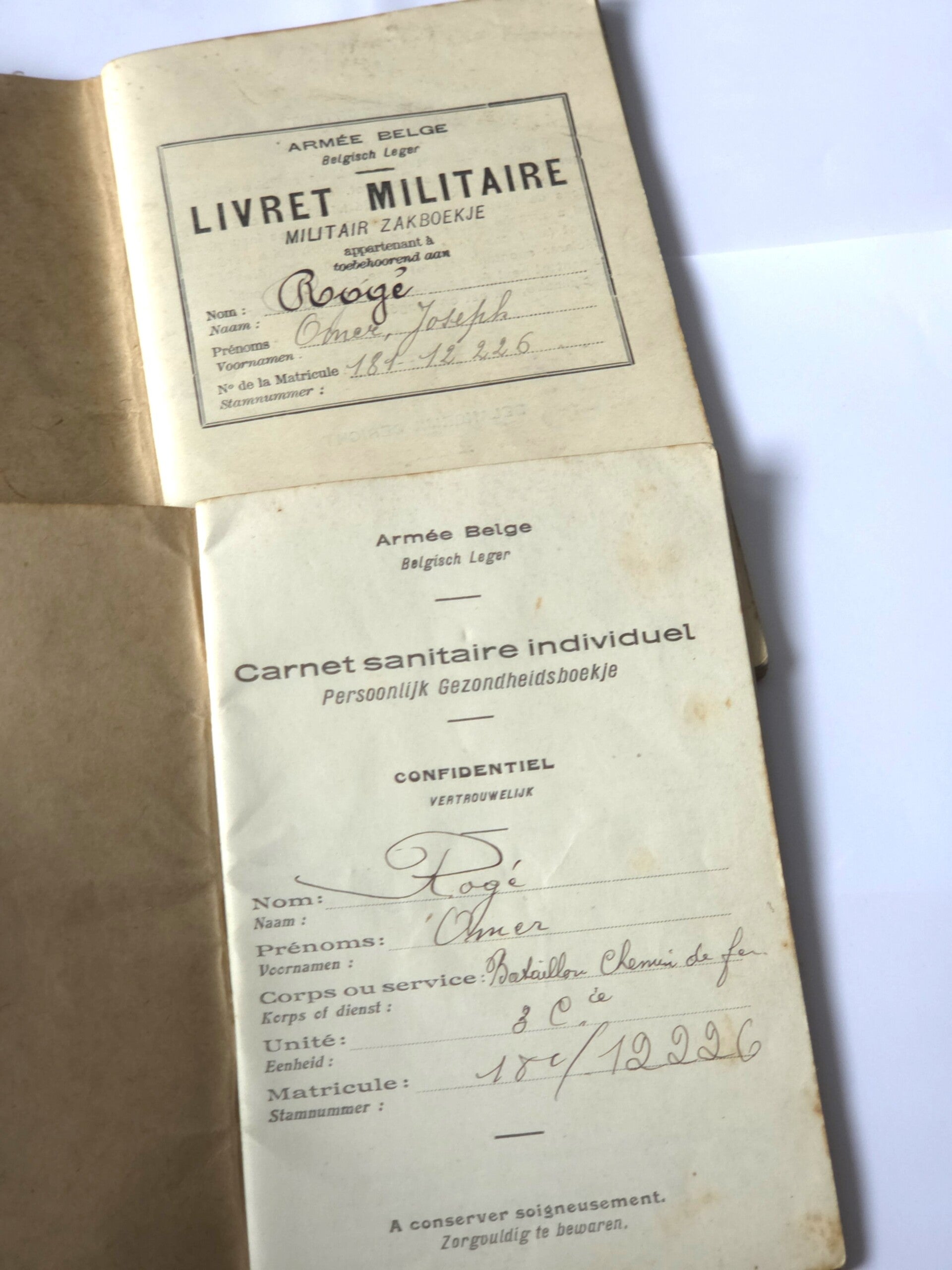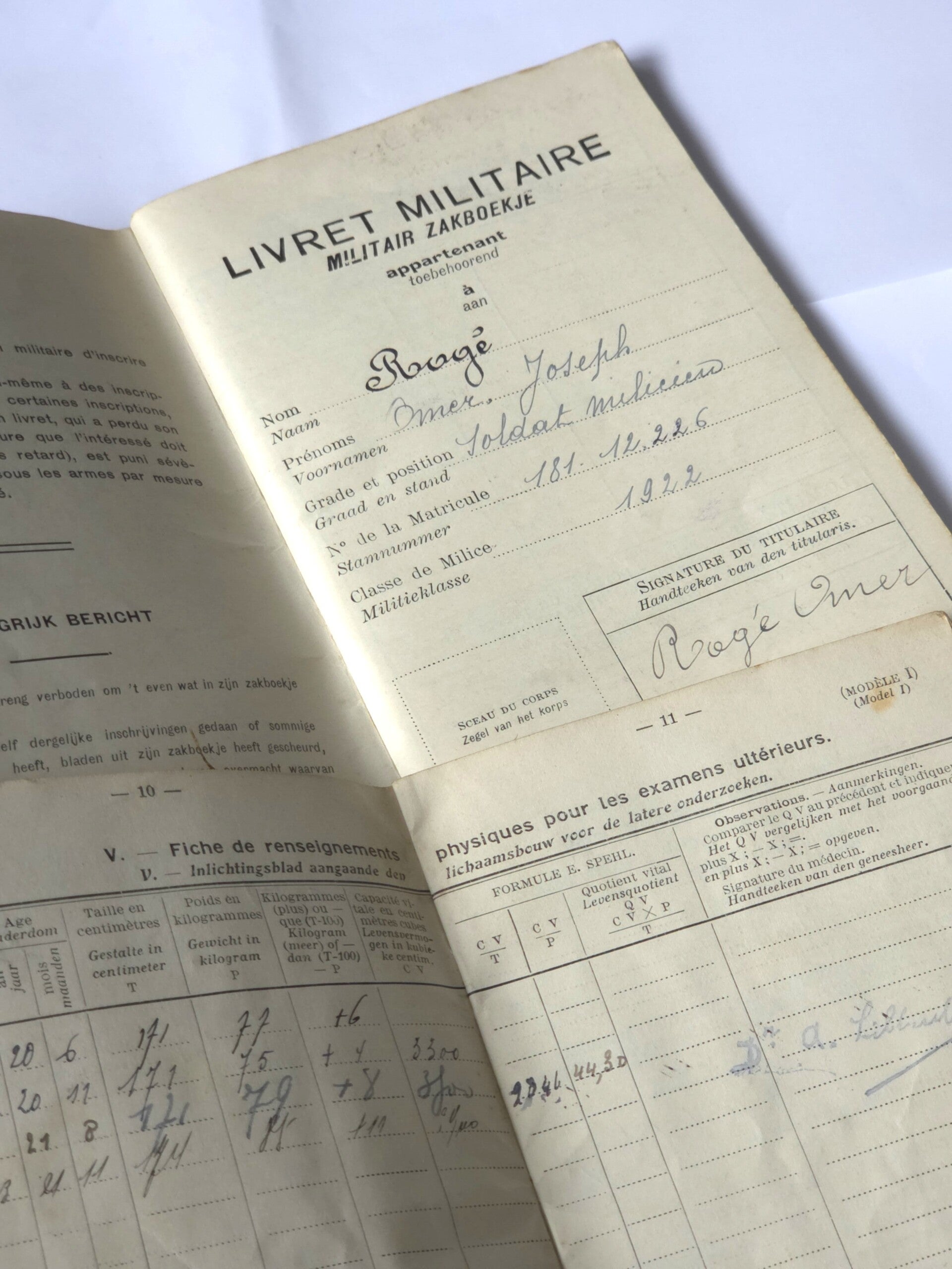 Een lotje documenten, periode: Interbellum.Afkomst van dezelfde persoon.Een milicien van het Belgische leger.