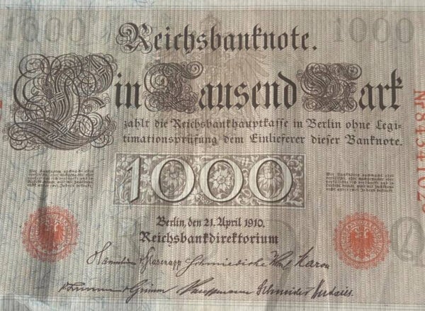 Bankbiljet: 1000 Mark 1910.